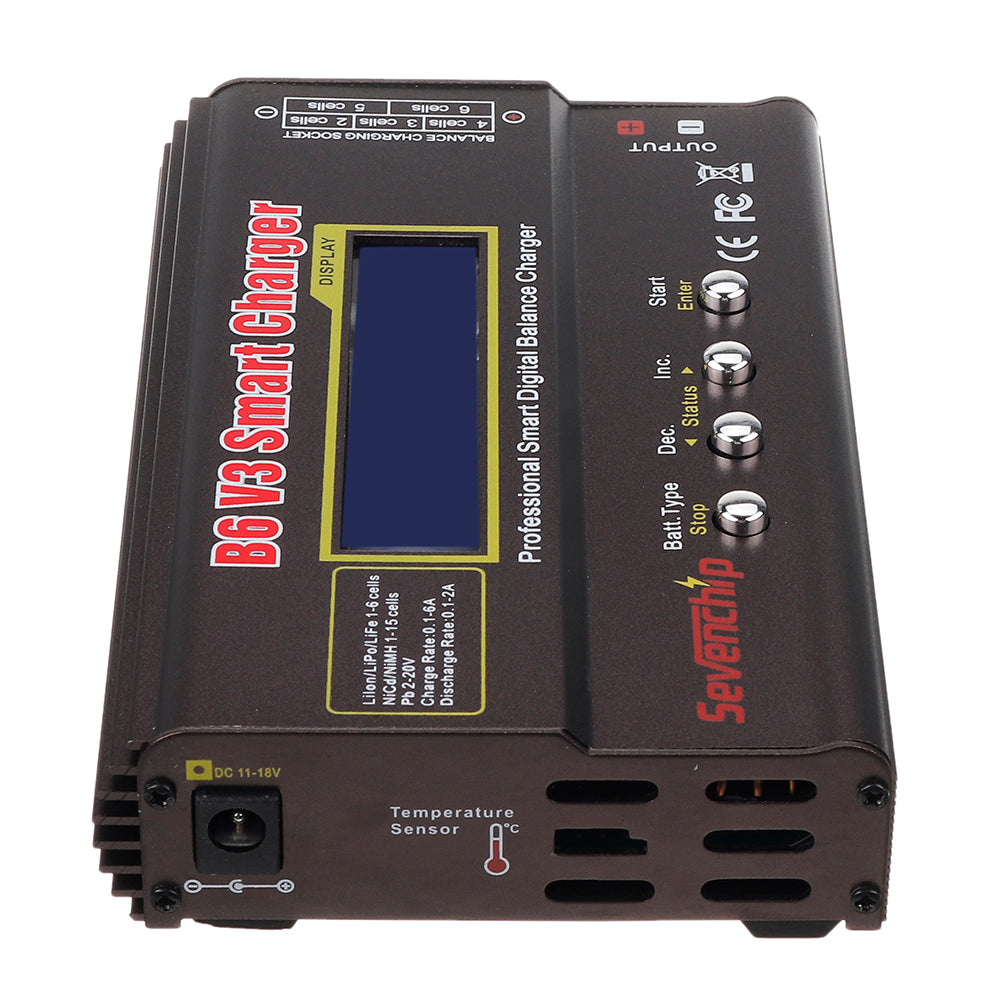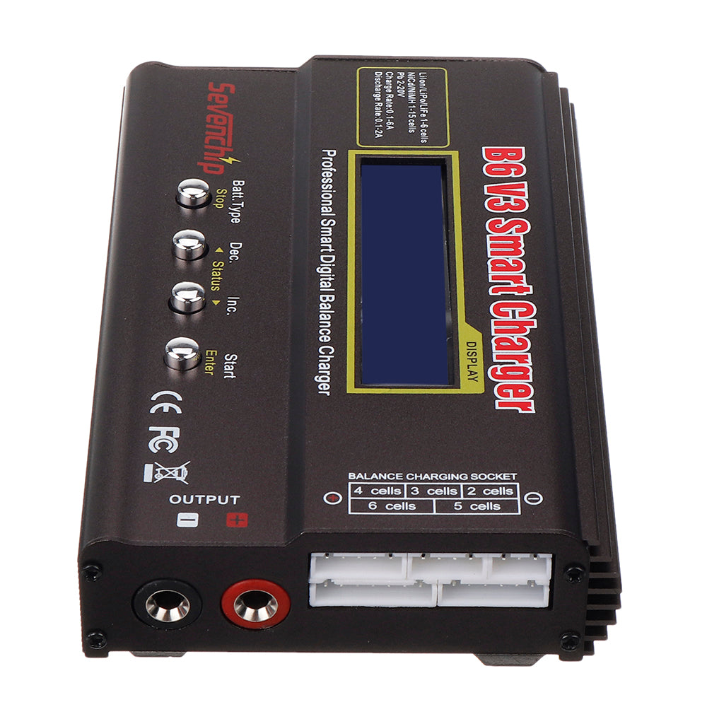 B6 V3 is an upgrade version of imax B6.It is a digital intelligent multi-functional charger which support LiPo/LiIon/LiFe/NiCd/NiMH PB batteries,high power battery LiHV and smart battery I,II,III. Max charger power 80W,discharger power 10W, max charge current 6A discharger current 2A with high charging efficiency.