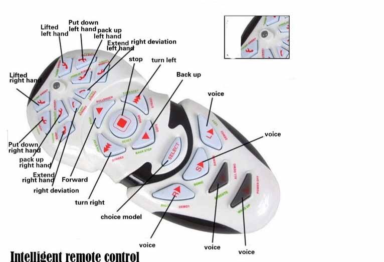 Include over 52 pre-programmed functions ,including pick-up,throw ,kick ,sweep ,strike, whistle,dance,belch, snore,act karate,and half a dozen different kung fu moves, just to mention a few.