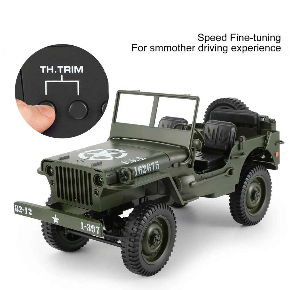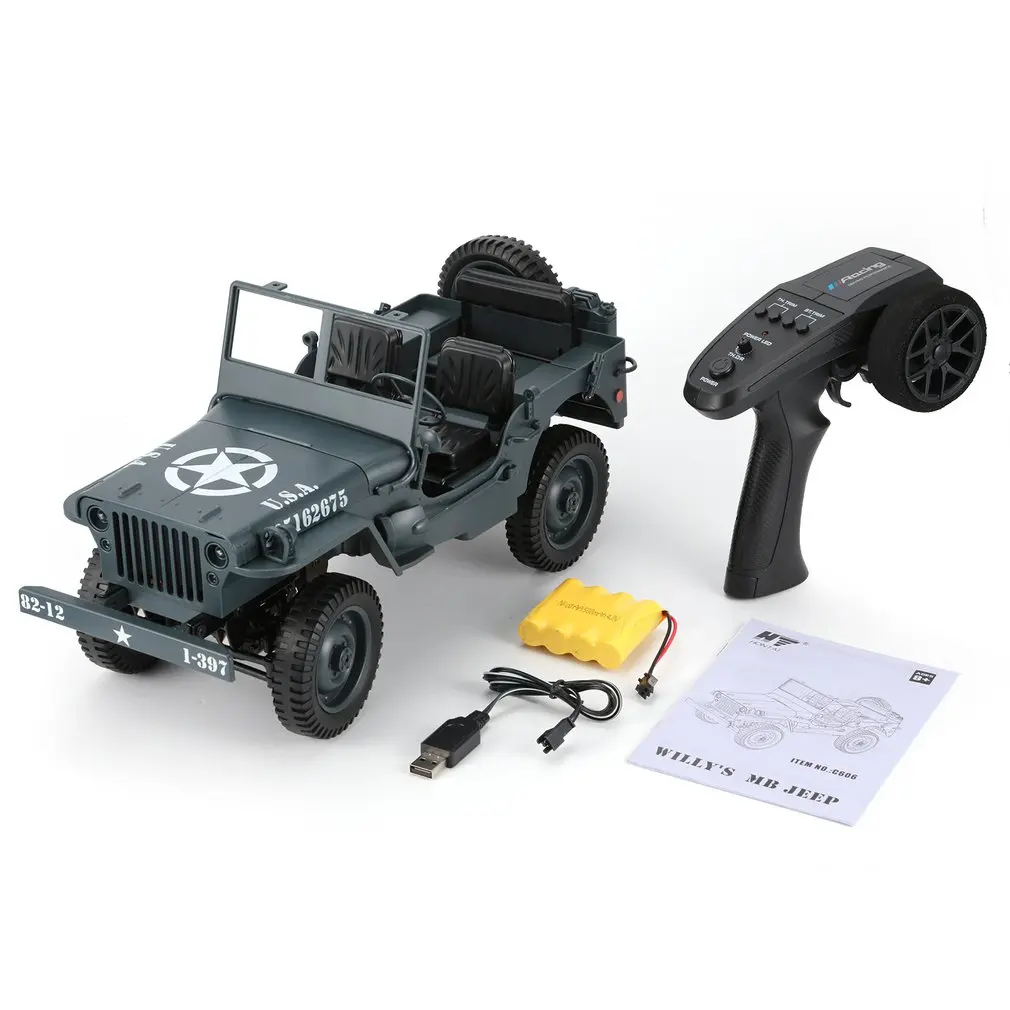 C606 1:10 RC Car 2.4G 4WD Convertible Remote Control Light Jeep Four-Wheel Drive Off-Road Military Climbing Car Toy Kid Gift