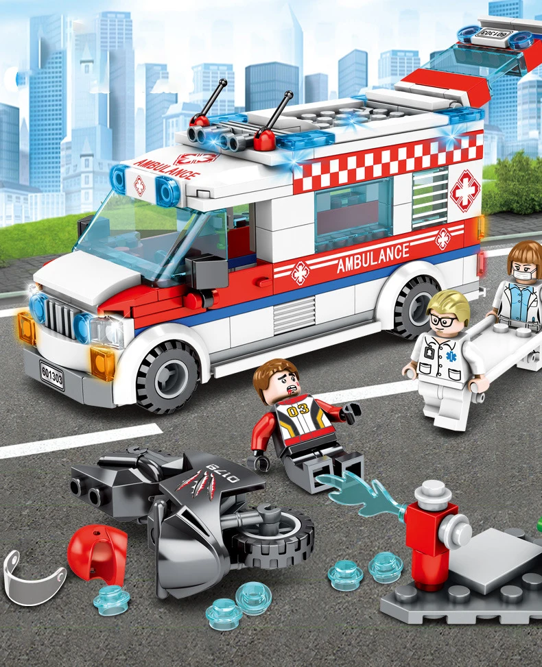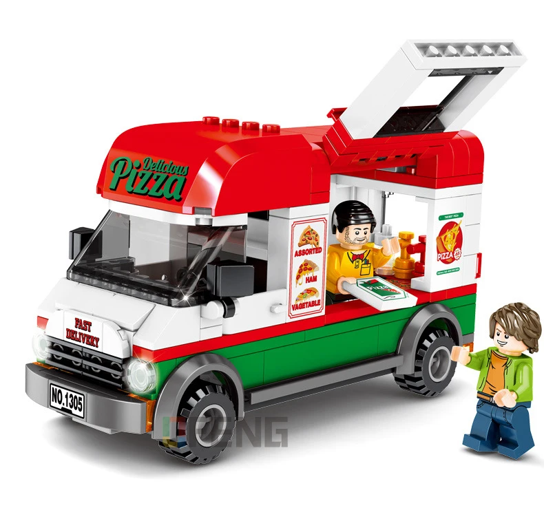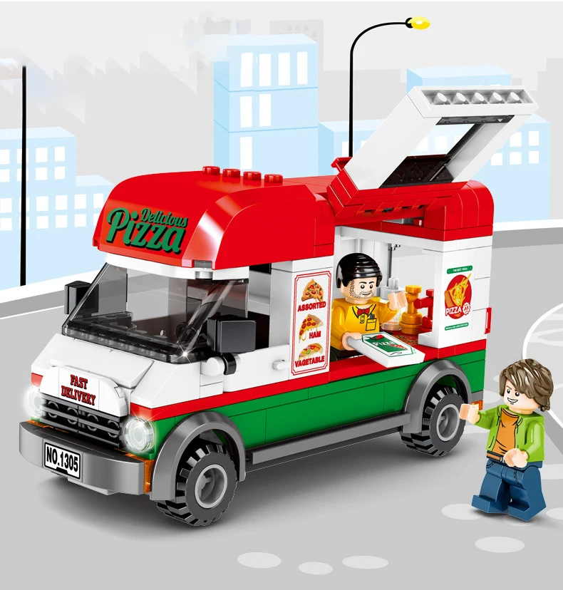City compatible Ambulance Bricks Pizza car Sanitation Vehicle Truck assembled Building Blocks kits kids toy Children gift