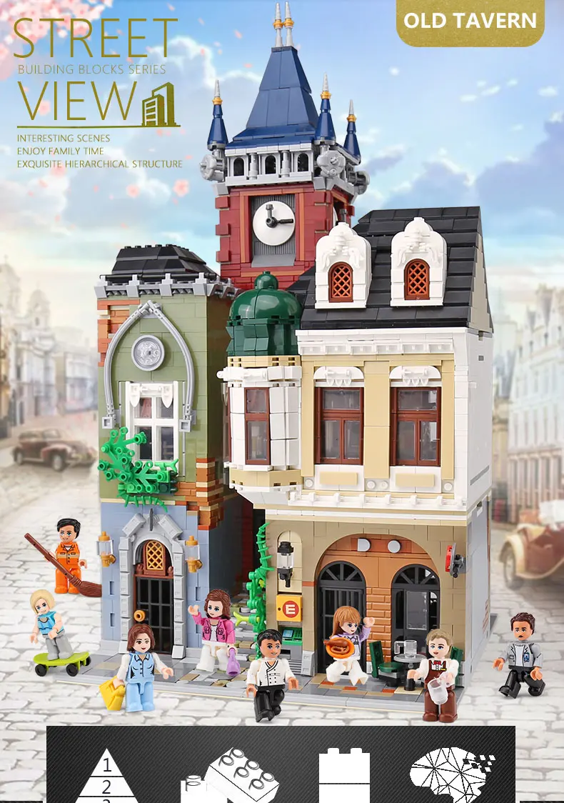 City Street Building Toys The Legoing MOC Old Town Pub Set Assembly Model Kids Christmas Toys Gifts Building Blocks Bricks Kits