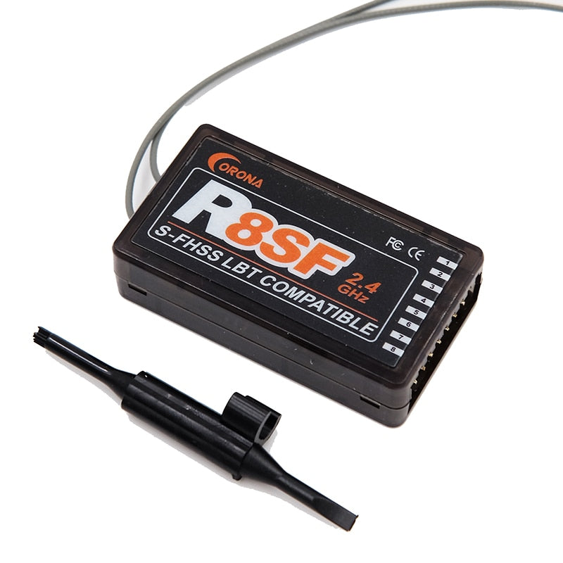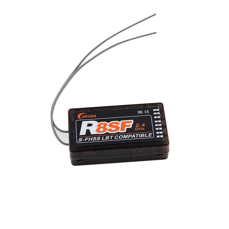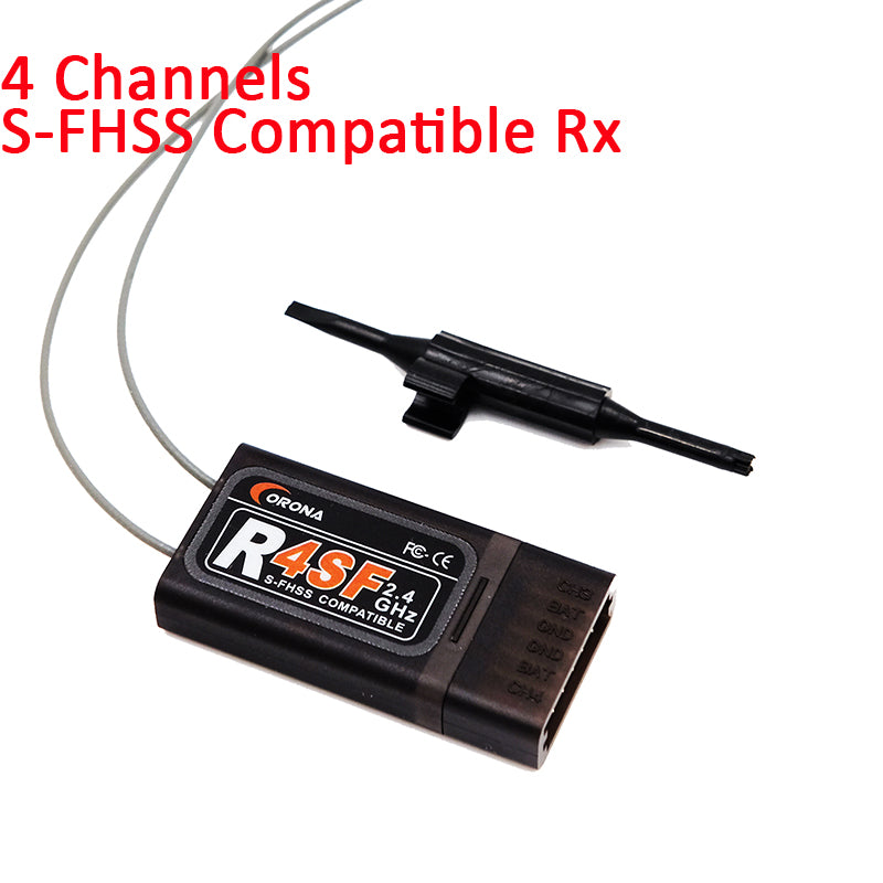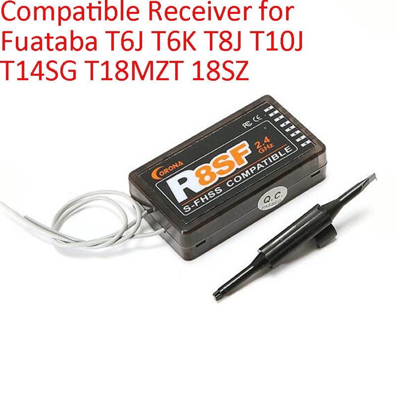 CORONA 2.4GHz S-FHSS/FHSS Compatible Receiver is designed to use with FUTABA S-FHSS/FHSS 2.4GHz transmitters, such as air system T4YF,T6J,T6K,T8J,T10J, T14SG ,T18MZ,T18SZ or surface system 3PL,T3PRKA,4PLS,T4PX,T4GRS under S-FHSS/FHSS protocol mode.