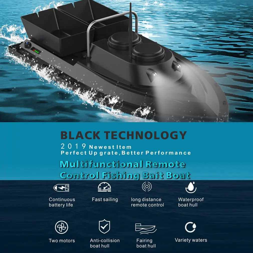 3.Double-motor & Large-load design:The hull adopts dual-motor design,two independent bins,which can be operated independently,with a load capacity of about 1.5 kg.