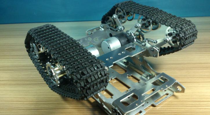 product configuration: the tank chassis, body and gear train and independent damping system are all metal production, delicate and beautiful, firm and stable, two strong power motor traction,powerful, can be forward backward, turn left turn right, the function such as circles, smooth operation, running smoothly; The chassis with independent suspension shock absorption system at the same timeThe run on the uneven pavement can easily deal with, of the middle of the fuselage is reserved a steering gear installation for customers to install the servo to provide convenient, and the chassis platform broad, flat, for customers to install control circuit provides enough space.