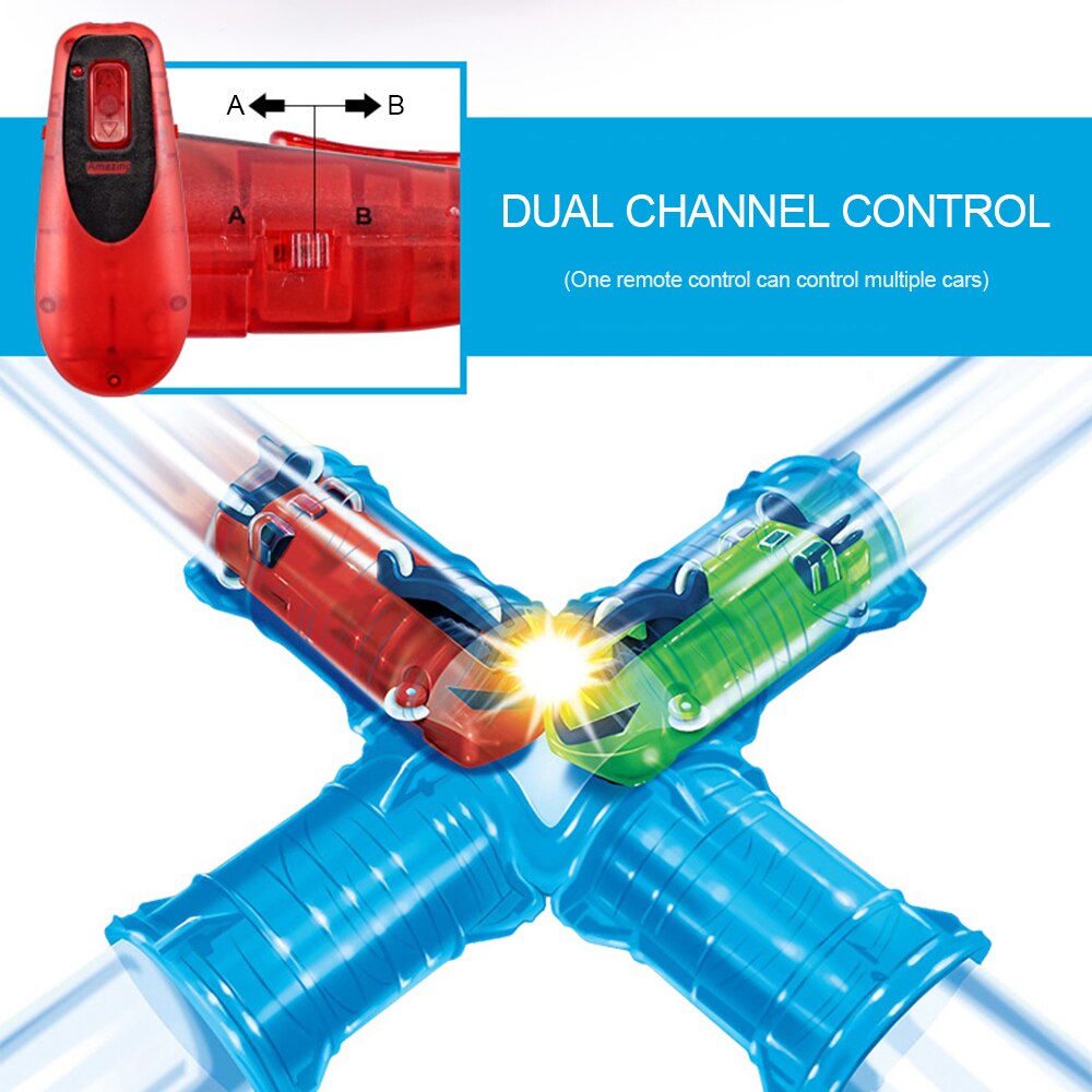 DIY assembled rail cars RC toy car children tubes Racing trucks Remote control speed tubes car race track Flash light building