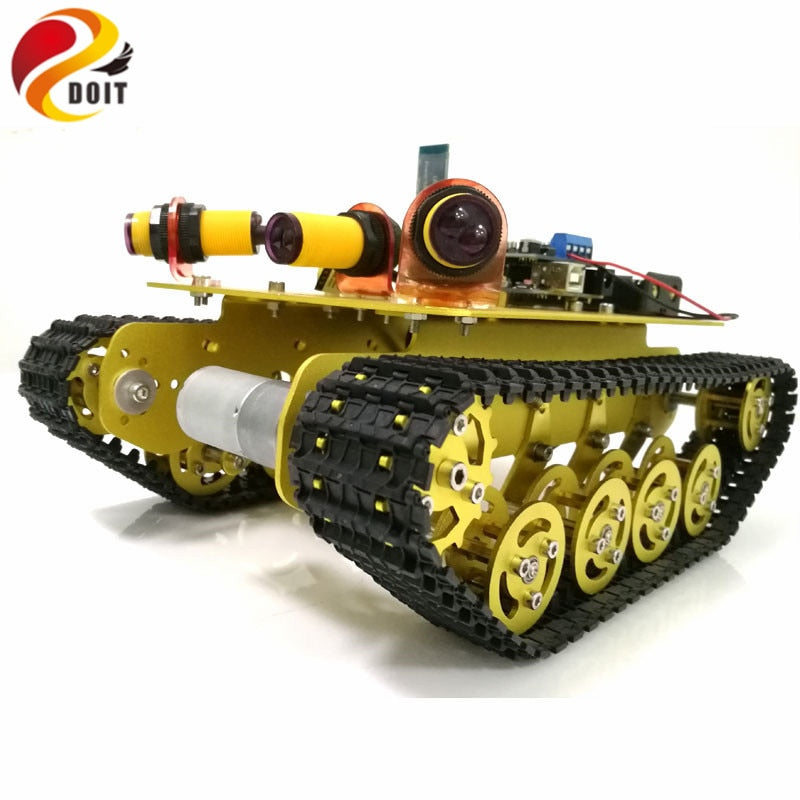 DOIT TS100 Bluetooth Control Obstacle Avoidance Robot Crawler Tank Car Chassis with Shock Absorption for Modification by Phone