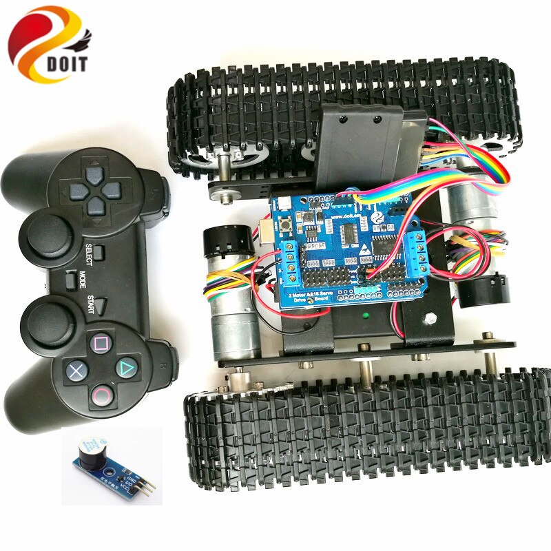 DOIT Wireless Control Smart RC Robot Kit by PS2 joystick Tank Car Chassis with Uno R3 Motor Shield DIY game playstation