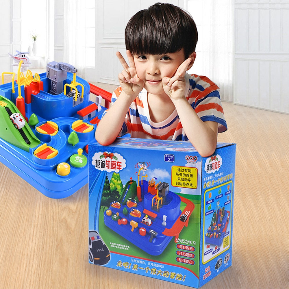 Douyin Celebrity Style Car Adventure Multi-functional Checkpoints Cartoon Rail Car Educational Manual Manipulator Inertia Toy