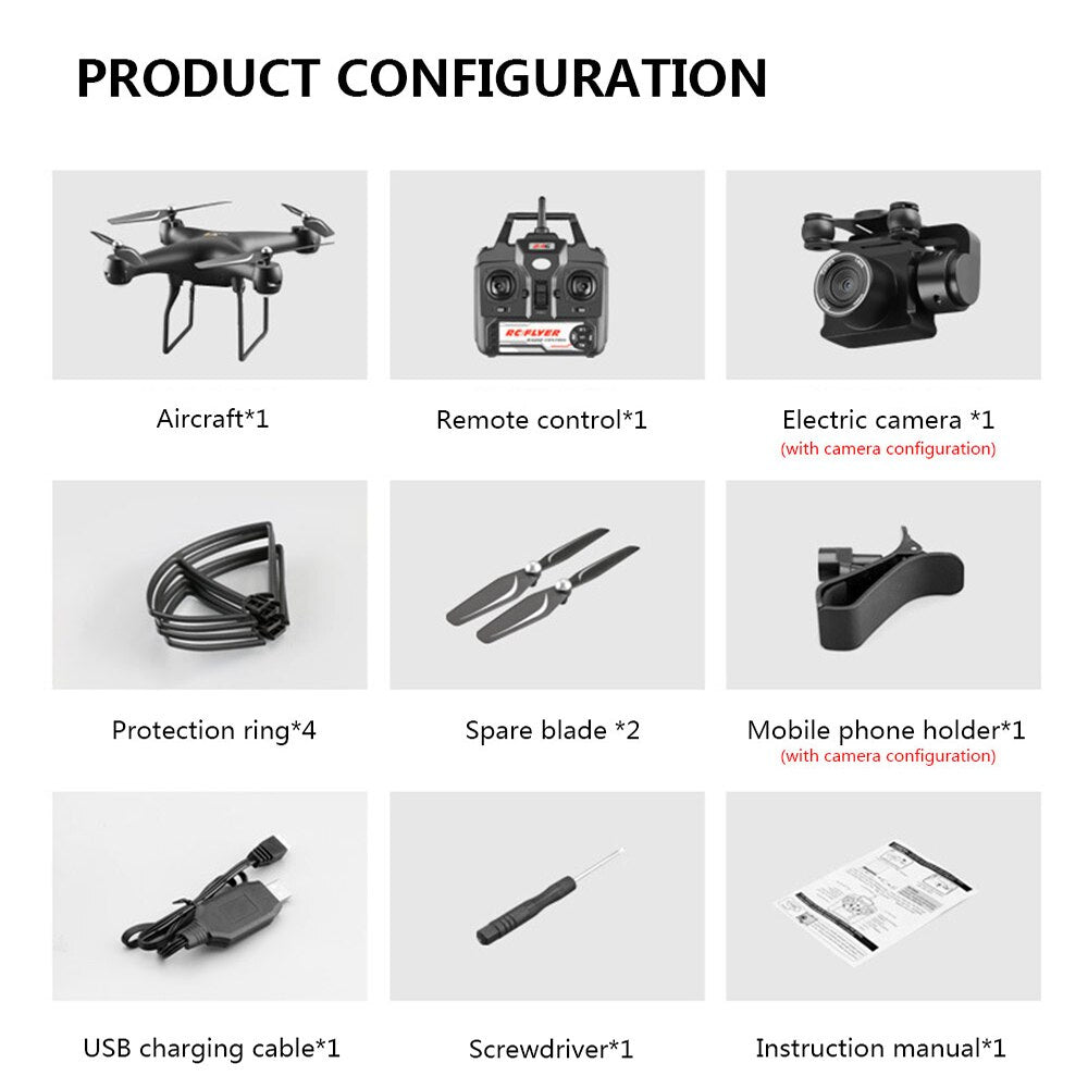 Function: up/down, forward/backward, left/right turn/left/right fly/high hover/360 degree flip, headless mode/one button return, speed adjustment/phone operation/voice operation/track flight/camera video /Emergency stop / electric adjustment camera
