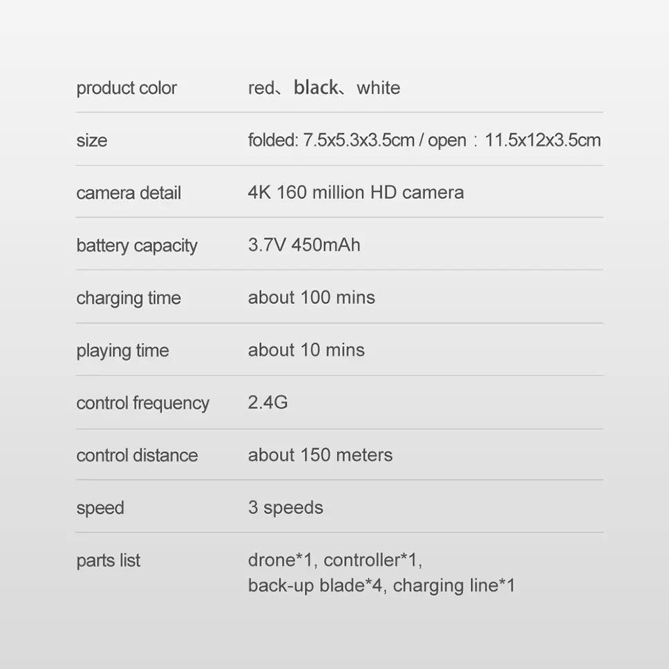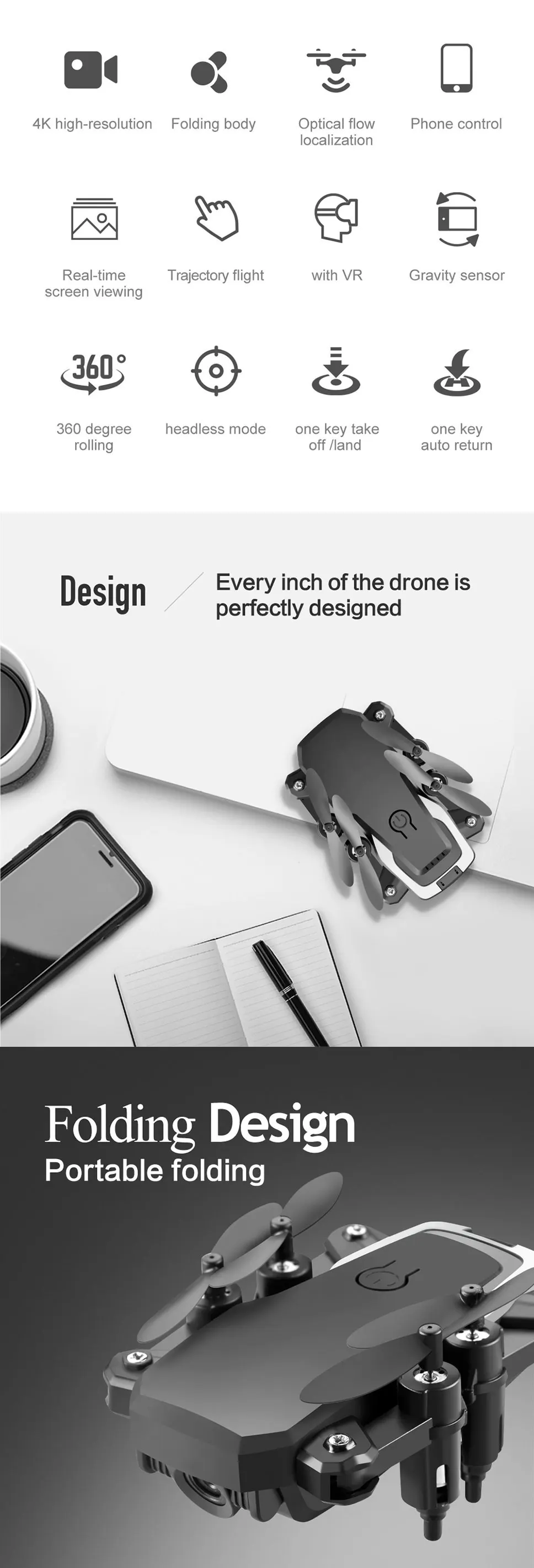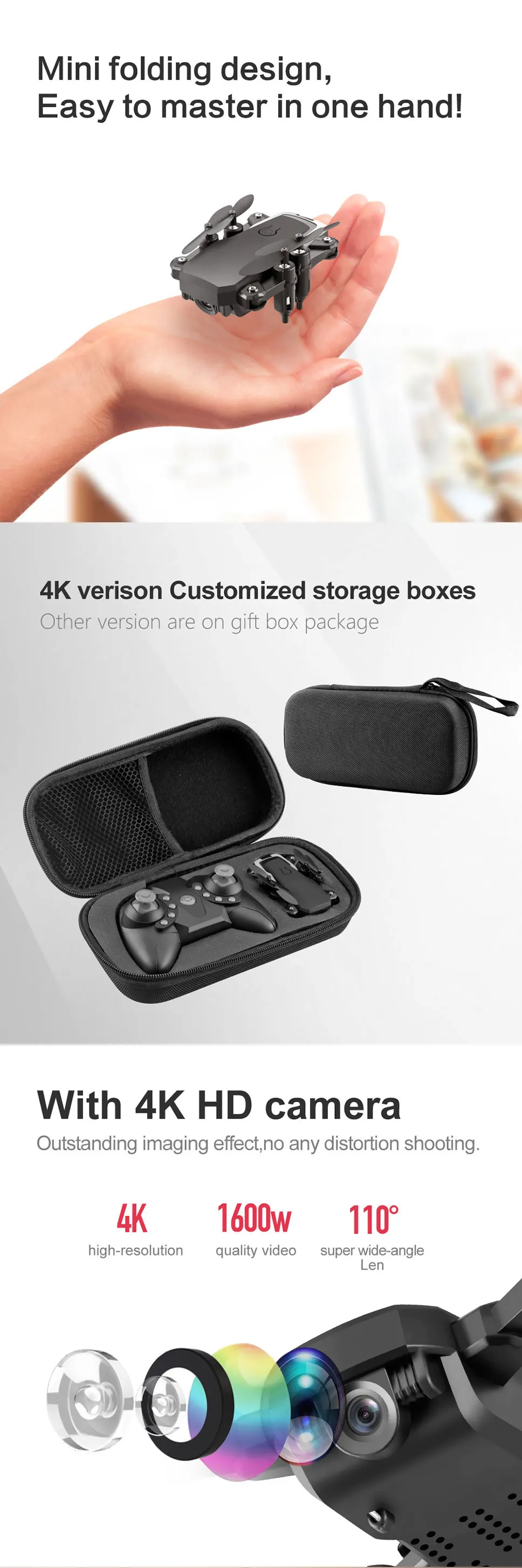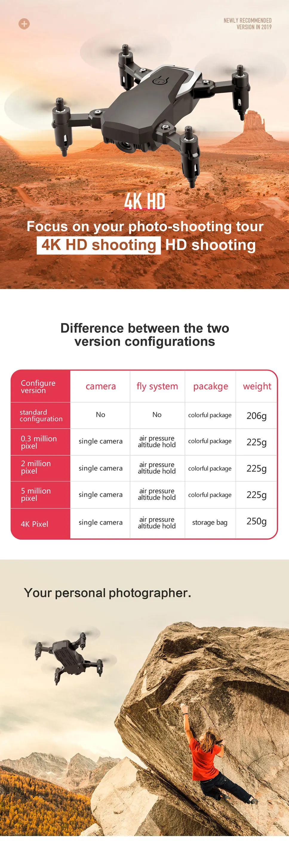 LF606 Wifi FPV RC Drone Quadcopter with 0.3MP/2.0MP/5.0MP/4K Camera Note: The Basic Version NOT Includes the Camera. Description: Item NO.: LF606 Material: ABS Plastic Color: Black, White Red (Optional) Transmitter Mode: Mode 2 (left hand throttle) Control Distance: about 50-80m Quadcopter Battery: 3.7V 500mAh Lithium Battery Transmitter Battery: 3 x AAA Battery (NOT Included) Flying Time: about 8 minutes Charging Time: about 70-90 minutes Camera: Photo/Video: WIFI FPV: 0.3MP 2.0MP 5.0MP 4K Product Size: 11*11*3.5 CM Package Size: 20*15*6 CM Feature: - With altitude hold mode function provides stable flight. - With wifi function can be connected APP, APK system to take pictures, video, real-time transmission through the phone camera image. - There have 4 cameras can be choose. With 0.3MP 2.0MP 5.0MP 4K wide angle camera give wide range high denfinition pictures and video. - With attractive headless mode, completely solving "loss of orientation" problems. - 2.4GHz radio control,easy adjust frequency - 6-Axis gyroscope strong stability, easily implement various flight movements, stronger wind resistance, easier to control - 360° 3D Flips(Continuous roll) - Fly both indoor and outdoor - There have 5 version can be choose. Basic Version-without camera, 0.3MP Camera ,2.0 MP camera,5.0MP 4KMP, Function: Video/Photograph/Raise amp, Down/Forwards amp, Backwards/Left amp, Right Turning/Left amp, Right Flying/Hovering/360 Degree Rotating/Set Hight Package Included: 1 x Aircraft 1 x Transmitter 1 x Camera (The Basic Version NOT Included) 4 x Propeller 1 x Lithium Battery 1 x Charging Cable