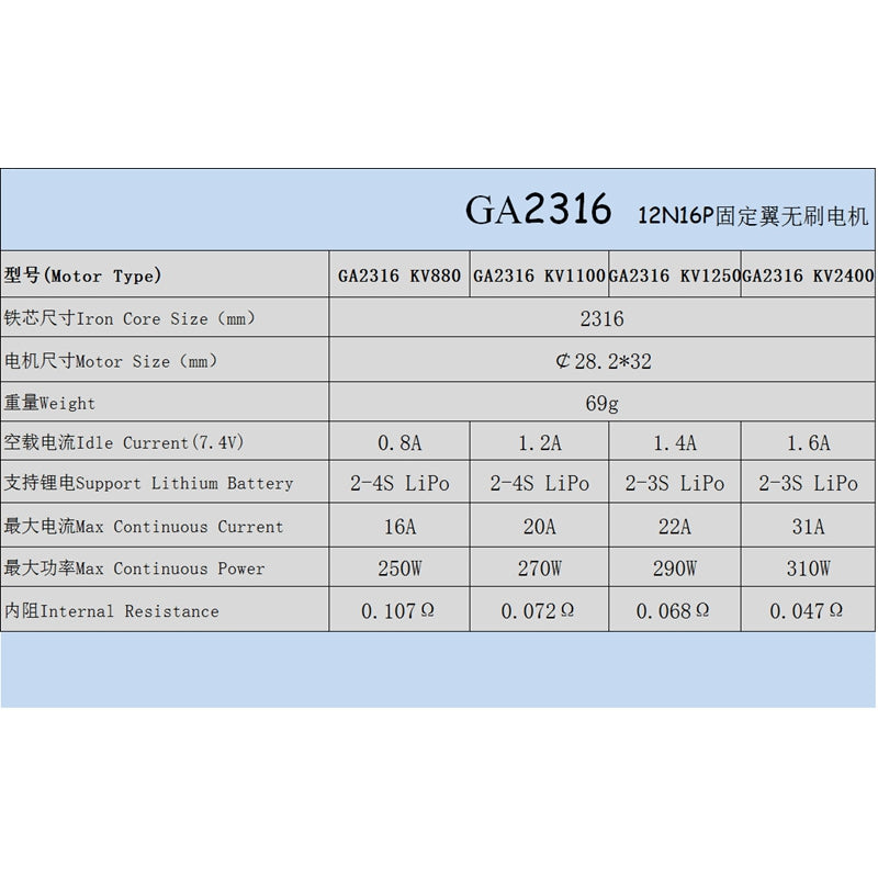 Eaglepower GA2316 KV1250 1250KV Brushless RC Motor 2S-3S for Fixed Wing UAV RC Airplane Racing Drone
