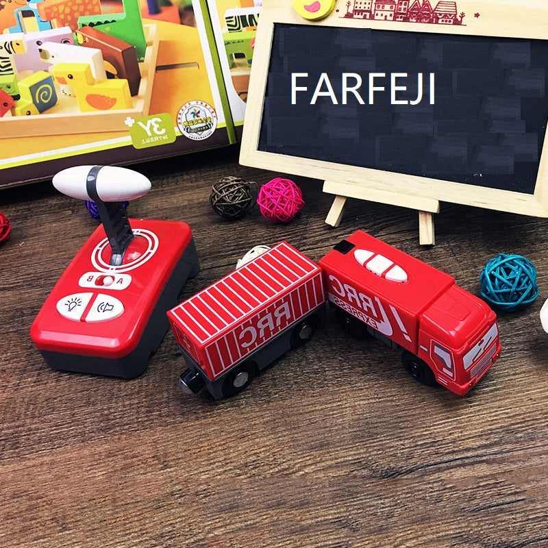 FARFEJI Red Remote Controlled Train Electric Rc Train Remote Toys For Children Wooden Tracks Rc Train Remote Control