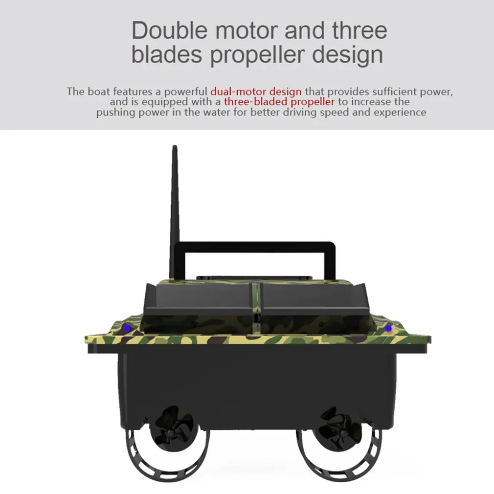 5.Double motor hull, three-leaf paddle design,The hull features a powerful dual-motor design that provides sufficient power for the hull to travel and is equipped with a three-bladed propeller for increased thrust and water transfer in the water for better driving speed and experience.
