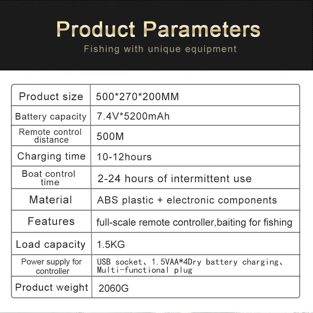 Special circuit and special digital automatic frequency modulation remote control device, completely solve a number of ships sailing mutual interference, remote control distance is close, out of control fishing boat trouble. Simple operation, strong stability, infinitely variable speed, forward, back push, left and right turn flexible!