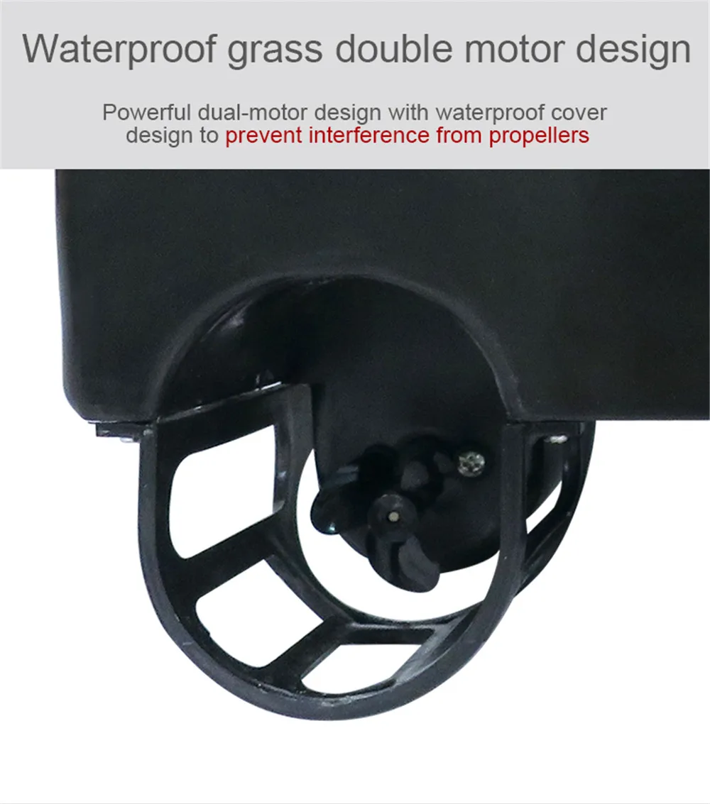 Powerful dual-motor design with waterproof cover design to prevent interference from propellers.