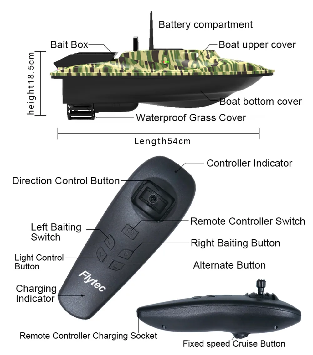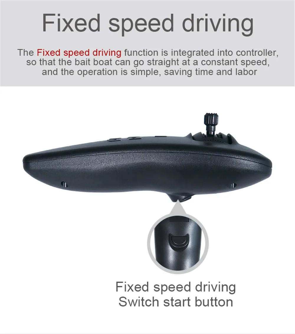 The Fixed speed driving function is integrated into controller, so that the bait boat can go straight at a constant speed, and the operation is simple, saving time and labor;