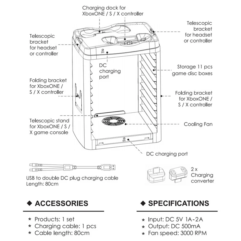 for ONE/X/Slim VR Display Cabinet Accessories Slim & Pro Vertical Cooling Fan Cooler Controller Charger Game Board Headset