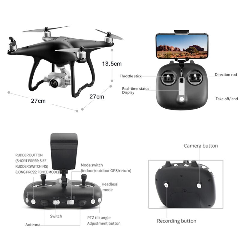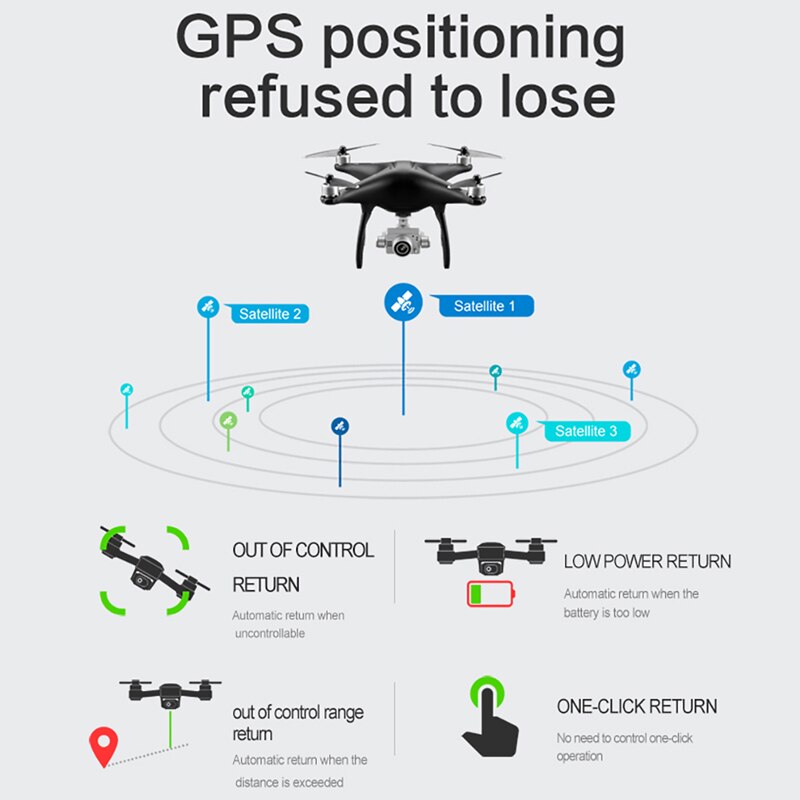 Up/down, Forward/backward, Turn left/right, Sideward flight, , LED Light, Headless Mode, GPS One Key Return, One Key RTH, Low Voltage RTH, Control Loss RTH,Follow Me(Once the APP upgraded), Waypoint Flying, Point of Interest, Indoor Altitude Hold,Outdoor Positioning Mode, WiFi FPV