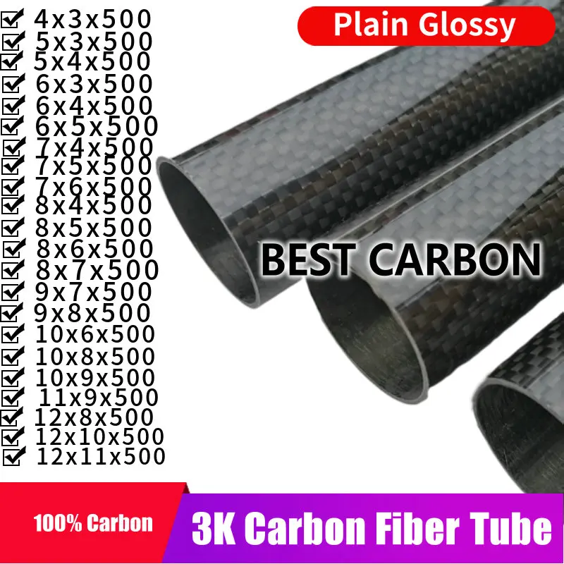 Free shiping 4 5 6 7 8 9 10 11 12mm with 500mm length High Quality Plain glossy 3K Carbon Fiber Fabric Wound Tube, CFK TUBE