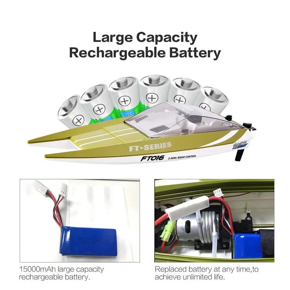 FT016 2.4G 30km/h Wireless High Speed RC Racing Boat Toy for Kids Adults