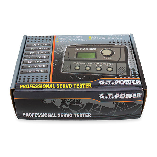 Servos are what make the RC world go 'round. One bad servo can keep your plane, car, or heli in the garage or lead to a costly, devastating crash. Luckily, the G.T. Power Digital Servo Tester allows you to test your servos with precision accuracy! This feature-rich tester digital tester performs all functions electronically so you get the most consistent testing results possible.