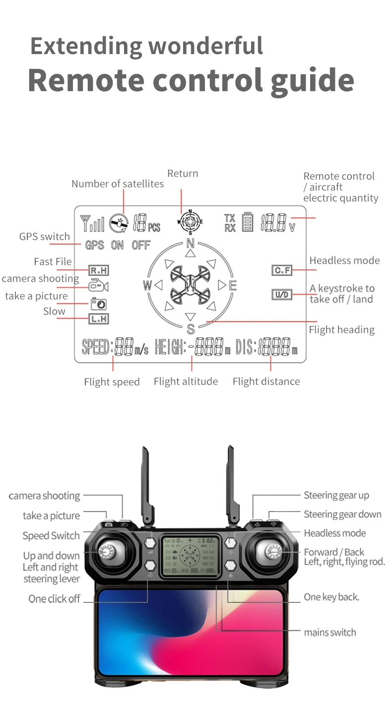 1.Indoor air pressure fixed / optical flow positioning / outdoor dual-mode GPS fixed point / GPS one-button return.