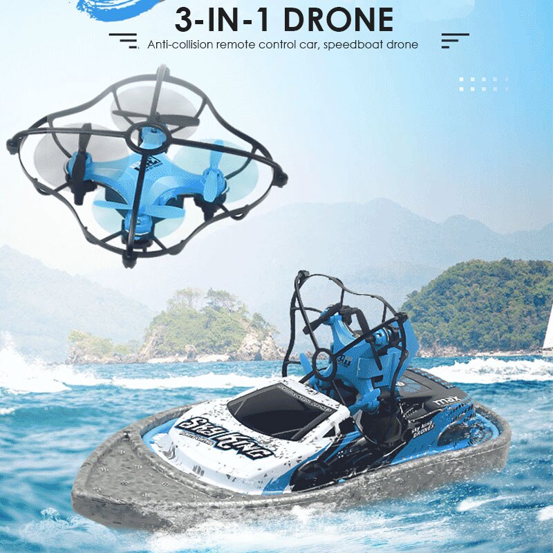 GW123 Mini 3-In-1 Triphibian Vehicle Drone Boat Car Air Water Land 3 Mode RC Quadcopter Pocket Dron Aircraft Foldable Toys Kid