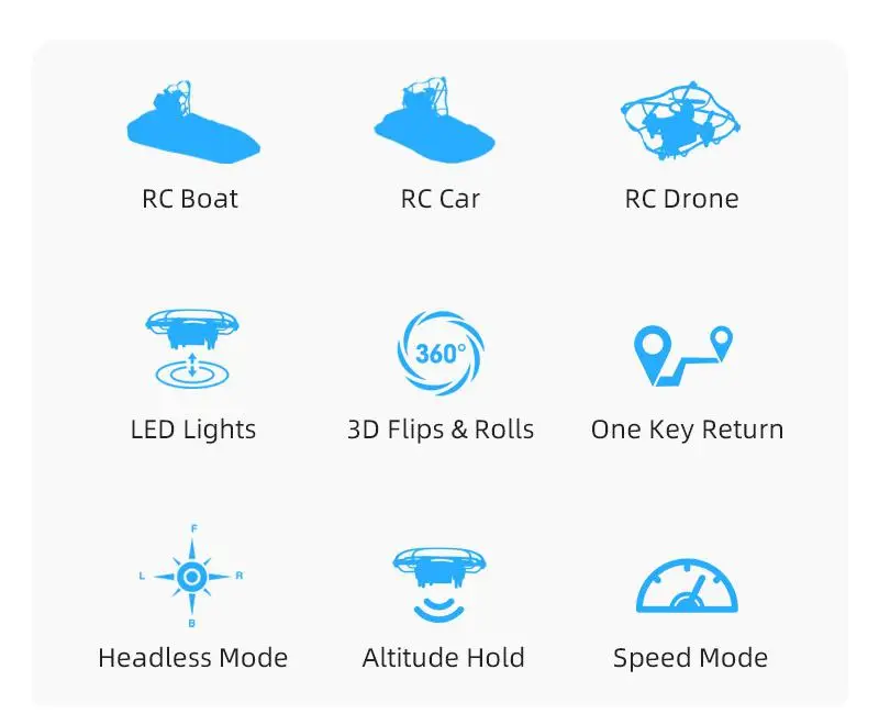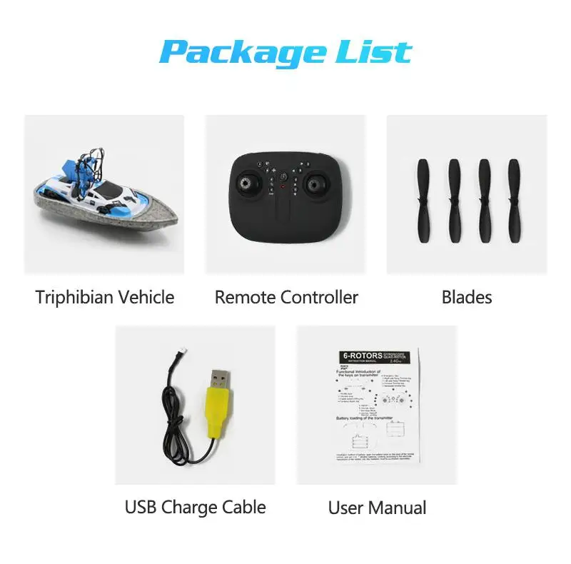 Description: Product Category:RC Mini Drone Boat Material: ABS + electronic components Remote control signal: 2.4 GHz Charging time: about 30 minutes Life time: about 6-8 minutes Battery capacity: 150 hp (inclusive) Remote control battery: 3 * AAA (not included) Product color: blue, red Product size: approx. 24.5 * 11.5 * 11 cm / 9.65 * 4.53 * inches Packing size: approx. 26.5 * 12 * 13 cm / 10.43 * 4.72 * 5.12 inches Package include: 1*Subject 1*Remote control 4*Blades 1*Charging cable 1*Instruction manual Note: 1-2cm signal might exist due to manual measurements (note: 1cm=0.39inch), please kindly understand. The colors of might differ due to different monitor settings.