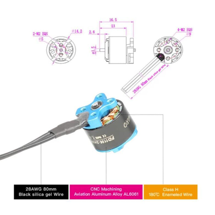 HGLRC FD1106 1106 2400KV 5-6S 1.5mm Shaft Brushless Motor for 2-3 Inch FPV Racing Drone