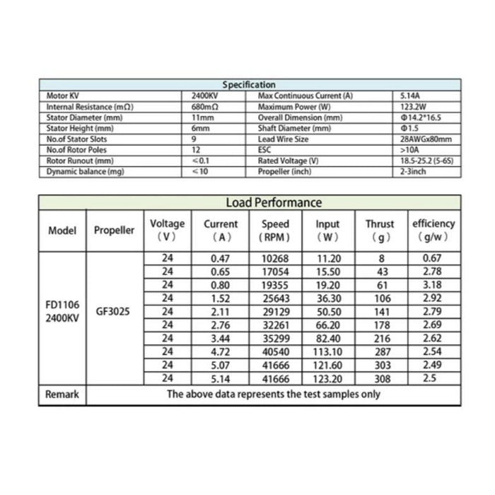 Item Name:FD1106 2400KV Brushless Motor
