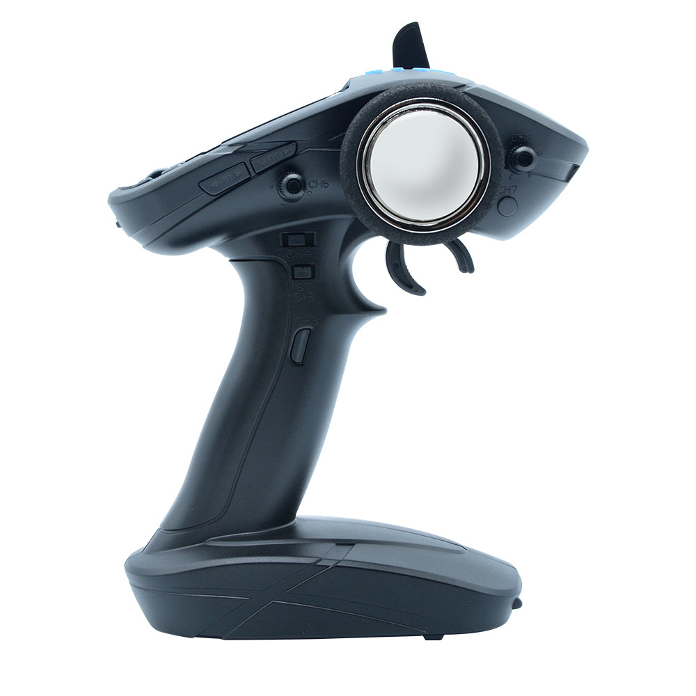 The Hobby Porter 007 7 Channel transmitter is packed with innovations and features not normally found on Pistol type radios. Starting with a huge 7 channels of control, built in 4WS Rock Crawler programmability, a Gyro equipped receiver as standard for Smart Vehicle Control mode (SVC), 15 Model memory, ABS, Dual Rates, EPA, EXP adjustability, a control mode, built in 2 & 3 cell battery checker, built-in temperature monitor with included prob and a built in LED flash light this is the radios for cars and boats.