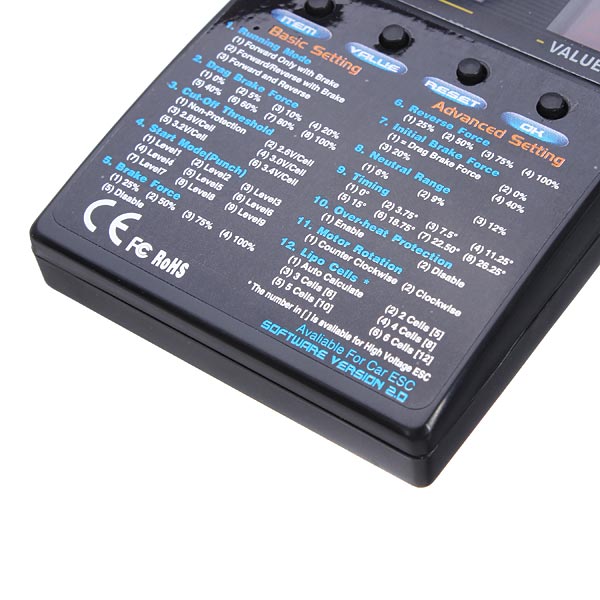 Input Voltage:  4.8-6V(If the ESC hasn't built-in BEC, you need to use an additional battery to supply the program card)