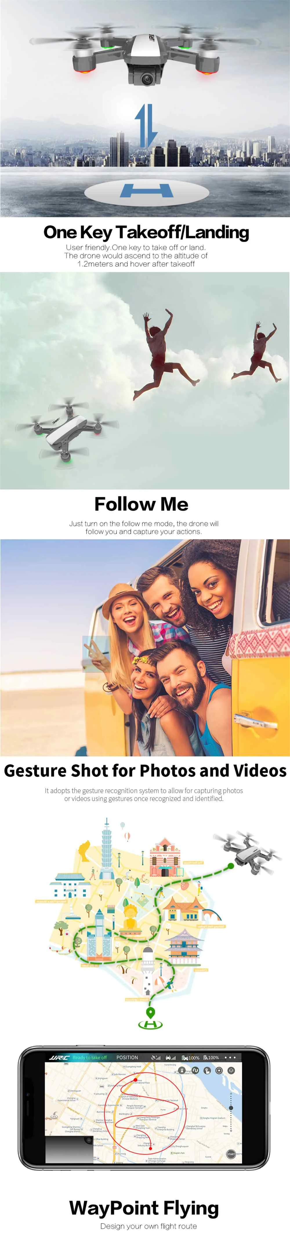 Function: Forward/backward, Turn left/right,Up/down, Camera, FPV, GPS, Altitude Hold Mode, Continuous Shooting, Headless Mode, One Key Automatic Return, One Key Follow, One Key Landing, One Key Taking Off, Optical Flow Positioning, Point of Interest