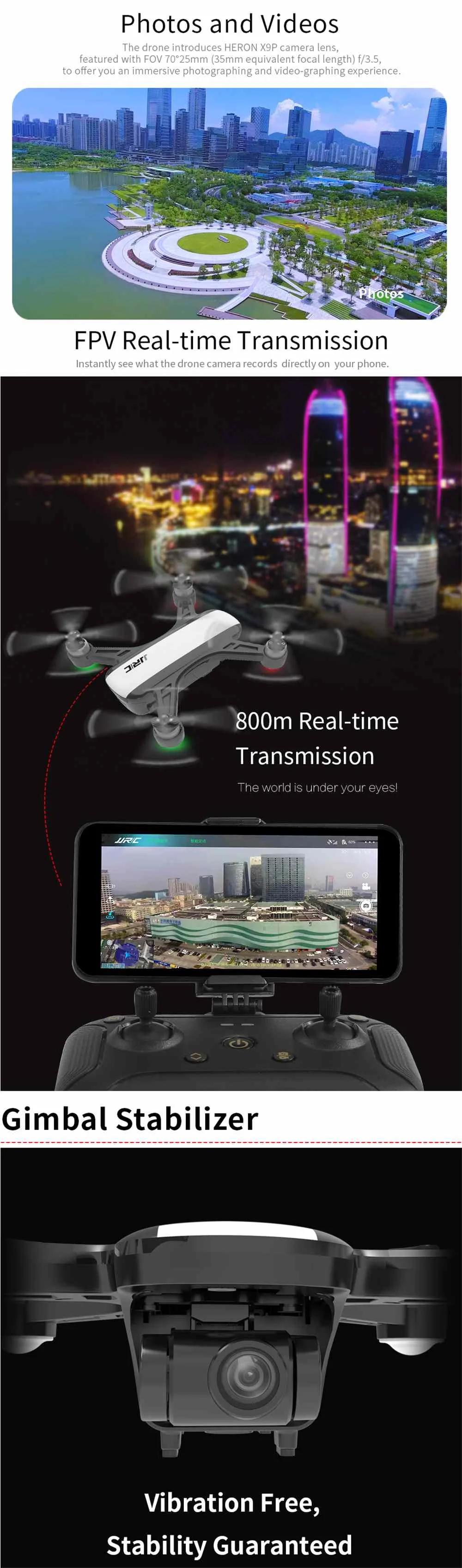 -FPV Real-time Transmission: Instantly see what drone camera records directly on your phone.