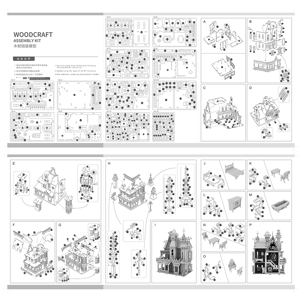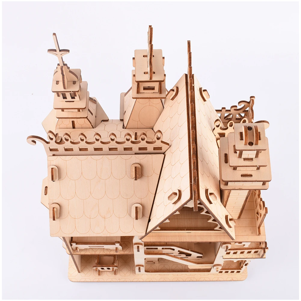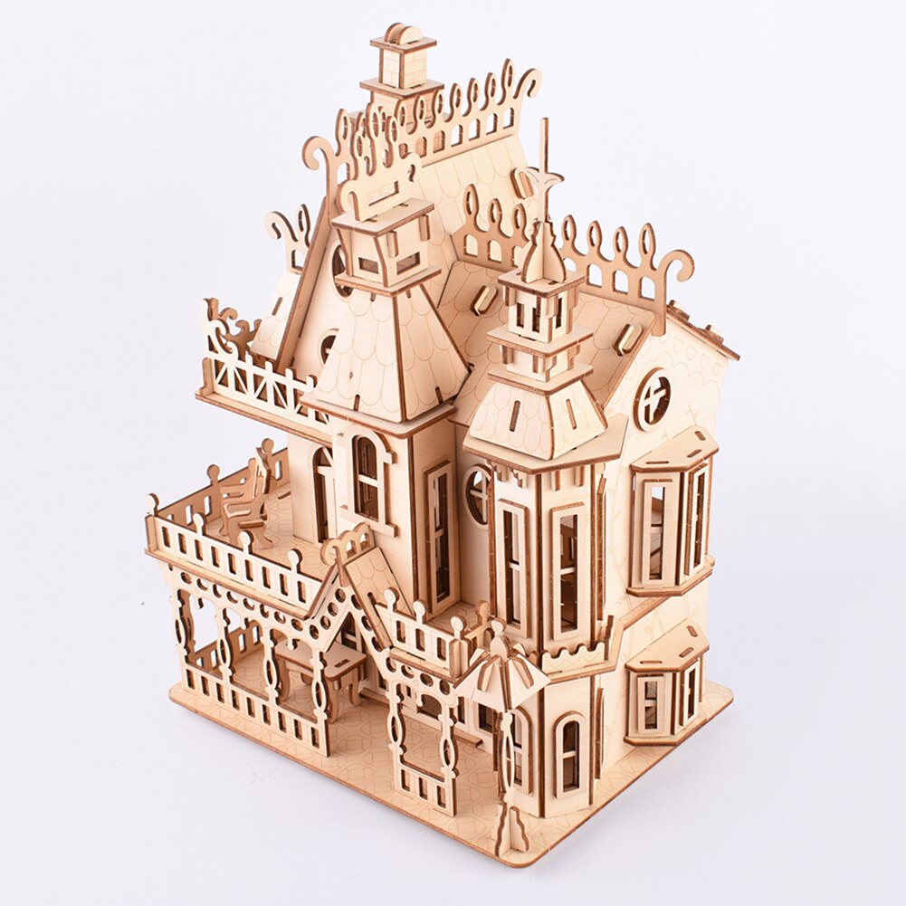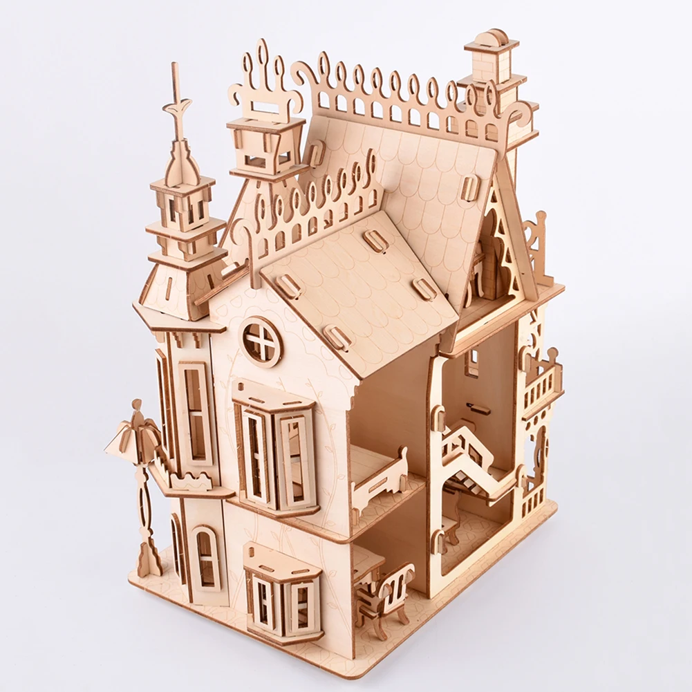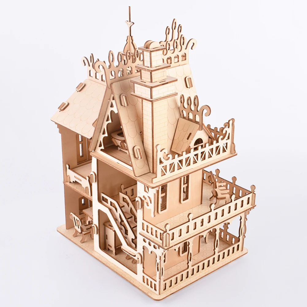 Interconnecting Blocks Woodcraft Construction Kit Wooden Villa DIY 3D Wooden Villa Puzzle Game Assembly Toy Gift