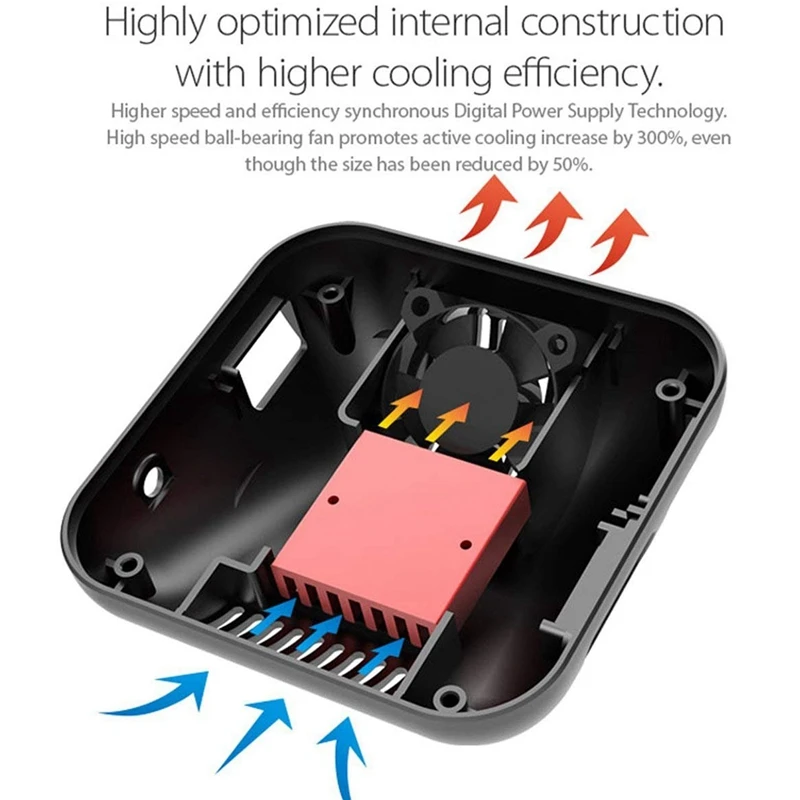 3. Highly optimized internal construction with higher cooling efficiency. Higher speed and efficiency synchronous Digital Power Supply Technology. High speed ball-bearing fan promotes active cooling increase by 300%, even though the size has been reduced by 50%.