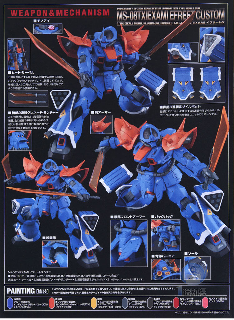 Japaness Bandai Original RE 1/100 Gundam EFREET CUSTOM Series MS-08TX [EXAM] Unchained Mobile Suit Kids Toys BANDAI