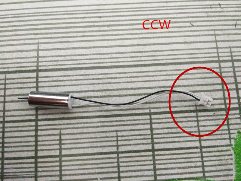 CCW motor- black/white cable motor. white cable is positive, black cable is negative.