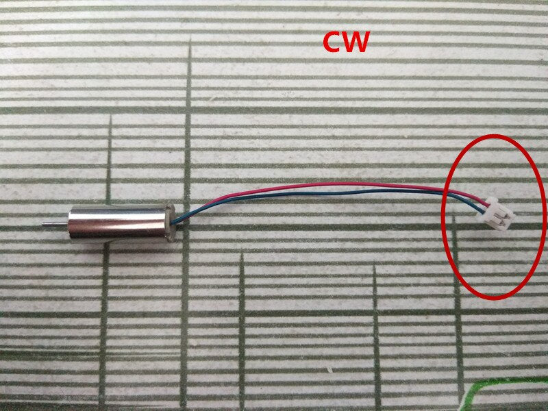 CW motor- red/blue cable motor. red cable is positive. blue cable is negative.