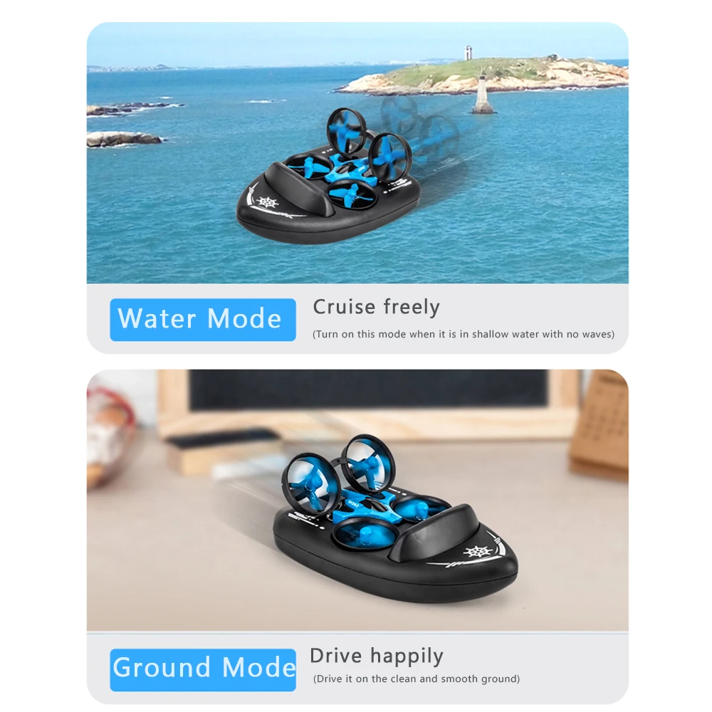 3 in 1 Drone/Boat/Vehicle: It is a unique flying ship that features three modes in one form. This super cool drone can offer you a unique flying experience.