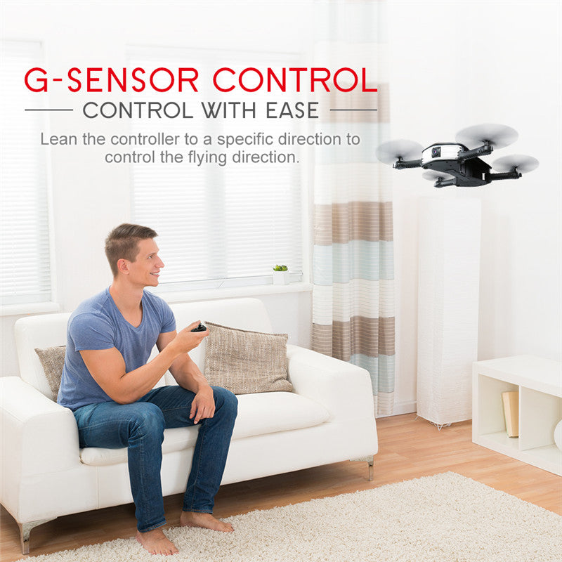 The Gravity Sensor Mode enables the small quadcopter to automatically follow the way you move your smartphone.