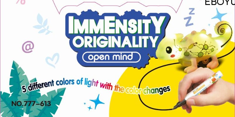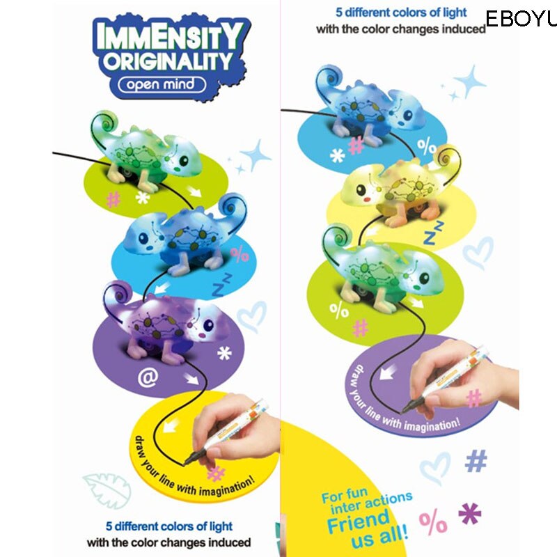 EBOYU Kids Magic Inductive Chameleon Model Toy [Follows Black Line] with 5 Changeable Colors + 5 Different Sound +Black Pen Magic Toy