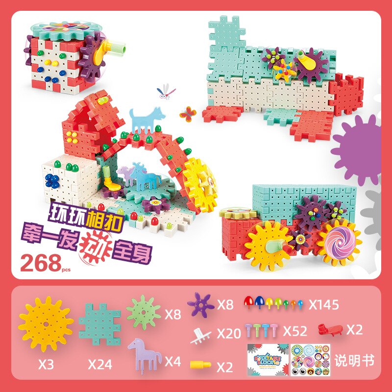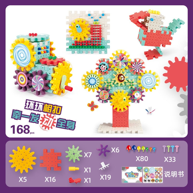 Kids Plastic 3D Gears Building Blocks Kits DIY Bricks Assembly Educational Toys for Development Creative Toy For Boys Girls