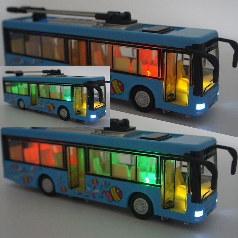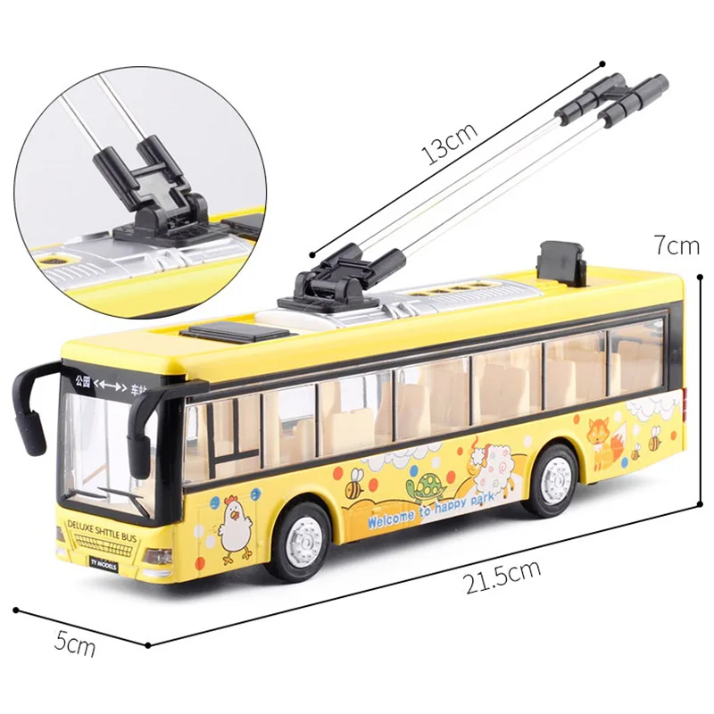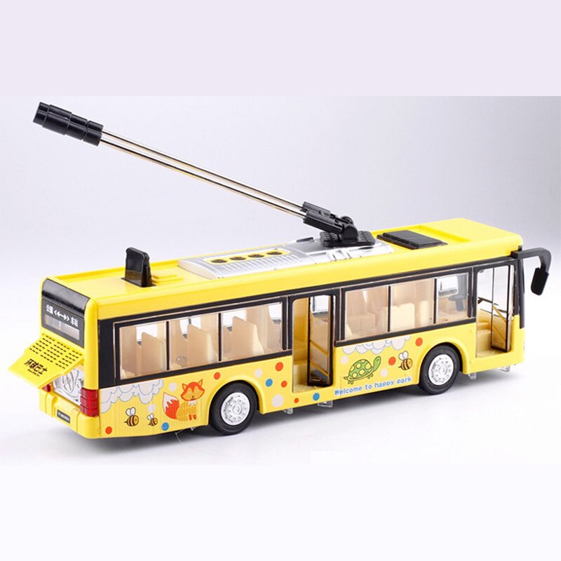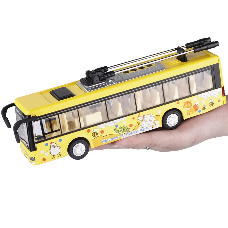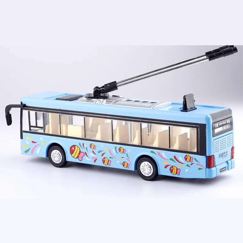 Kids Toys Alloy Sightseeing Bus Model 1/32 Trolley Bus Diecast Tram Bus Vehicles Car Toy with Light & Sound Collections