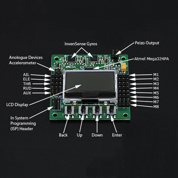 The KK2.1.5 is next big evolution of the first generation KK flight control boards. The KK2.1.5 was engineered from the ground up to bring multi-rotor flight to everyone, not just the experts. The LCD screen and built in software makes install and setup easier than ever. A host of multi-rotor craft types are pre-installed, simply select your craft type, check motor layout/propeller direction, calibrate your ESCs and radio and you’re ready to go! All of which is done with easy to follow on screen prompts!