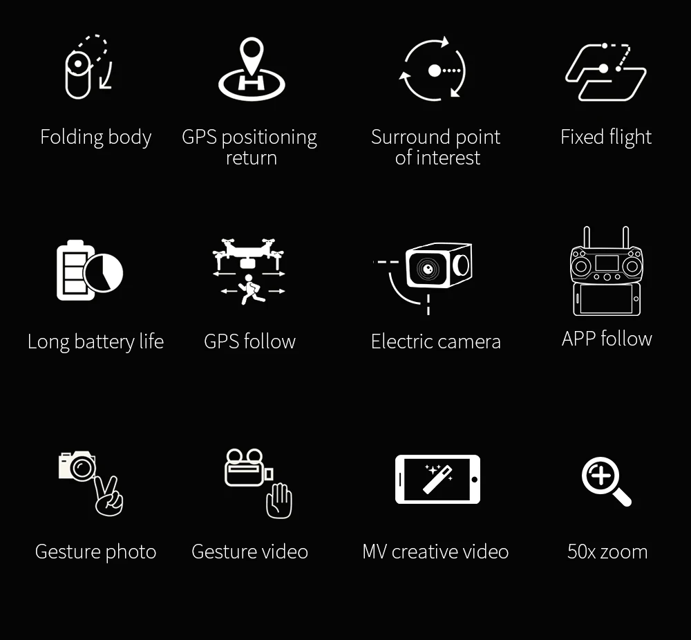 12. Long battery life /Long flight time 50mins (2 Batteries) ,25mins (1 battery)