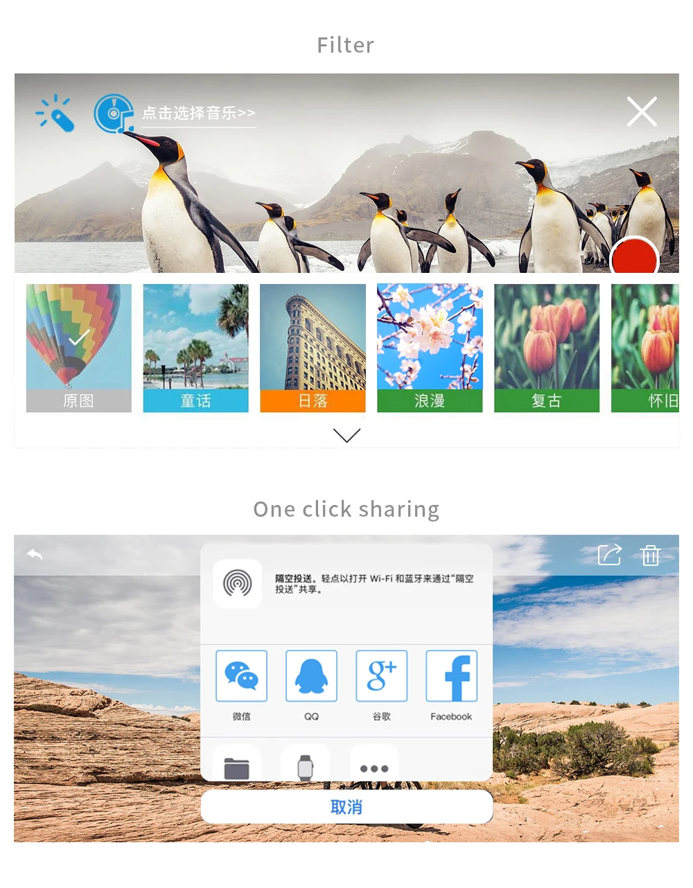You can share photos by single or multiple selections, and the videos can only be shared individually at a time.
