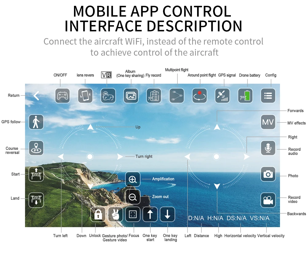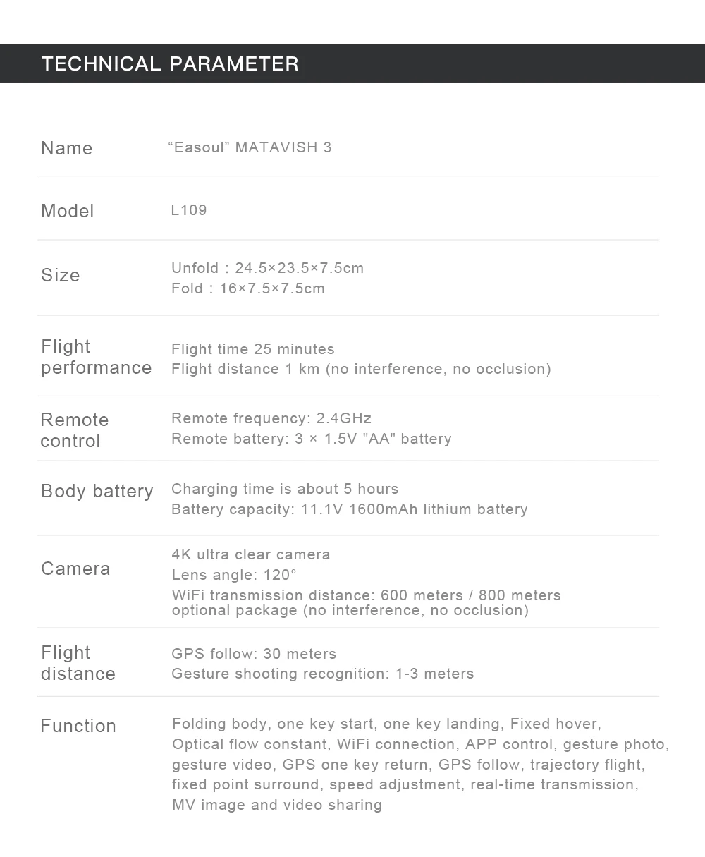 Wifi image transmission distance:600M(Free interference and no occlusion)