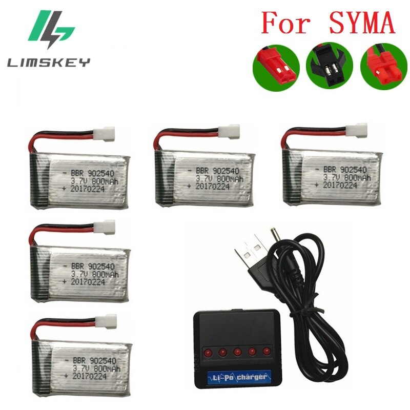 Limskey 800mAh 3.7V Battery + Euro Plug AC Charger for SYMA X5S X5HW X5HC RC Droen Quadcopter Spare Battery Parts