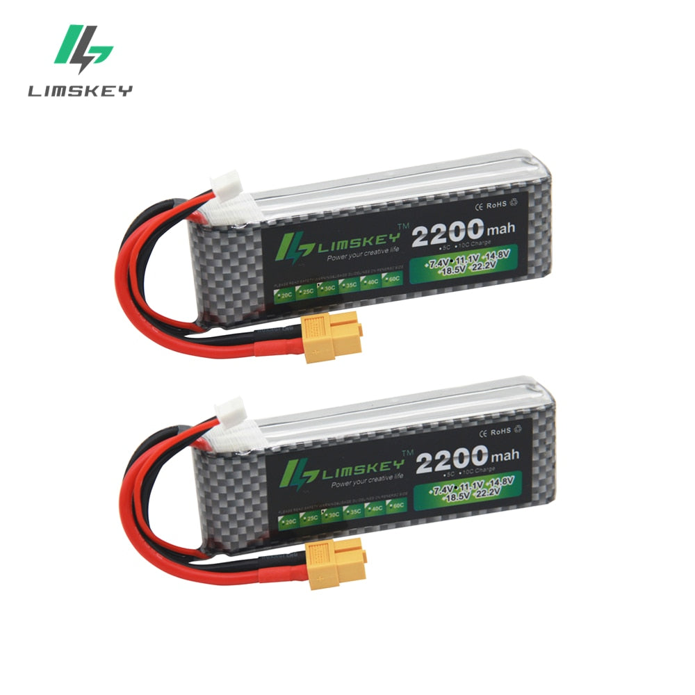 Limskey Power Brand New Lipo Battery 11.1V 2200 mAh 30C MAX 60C 3S T Plug for RC Car Airplane T-REX 450 Helicopter Part 2PCS/LOT